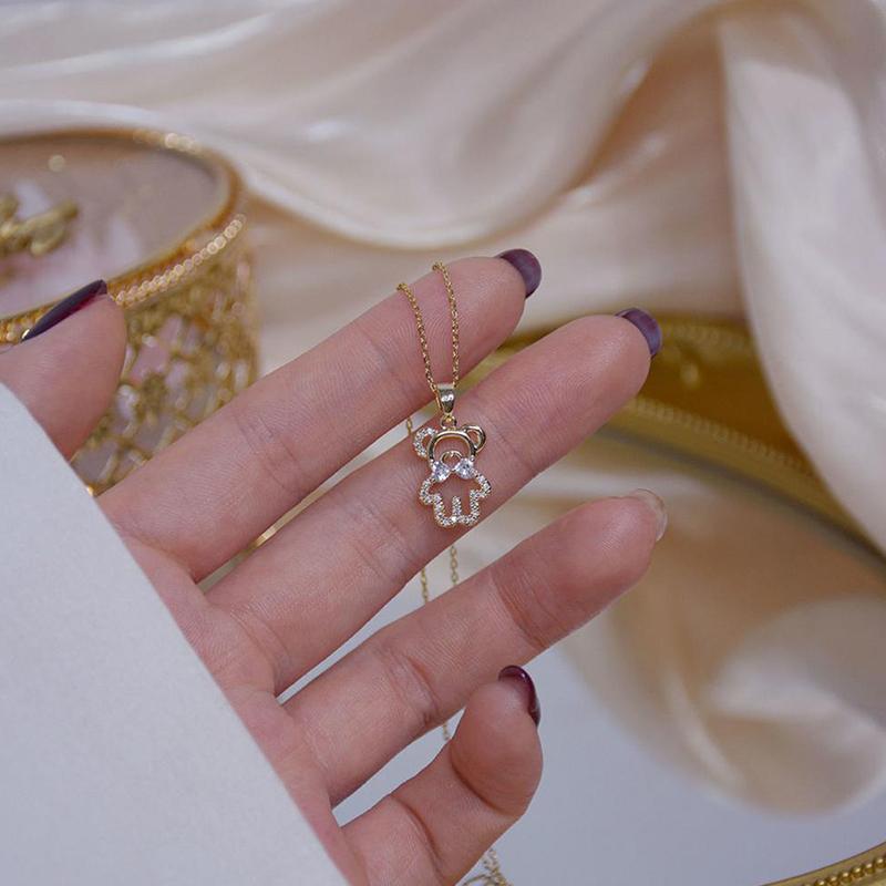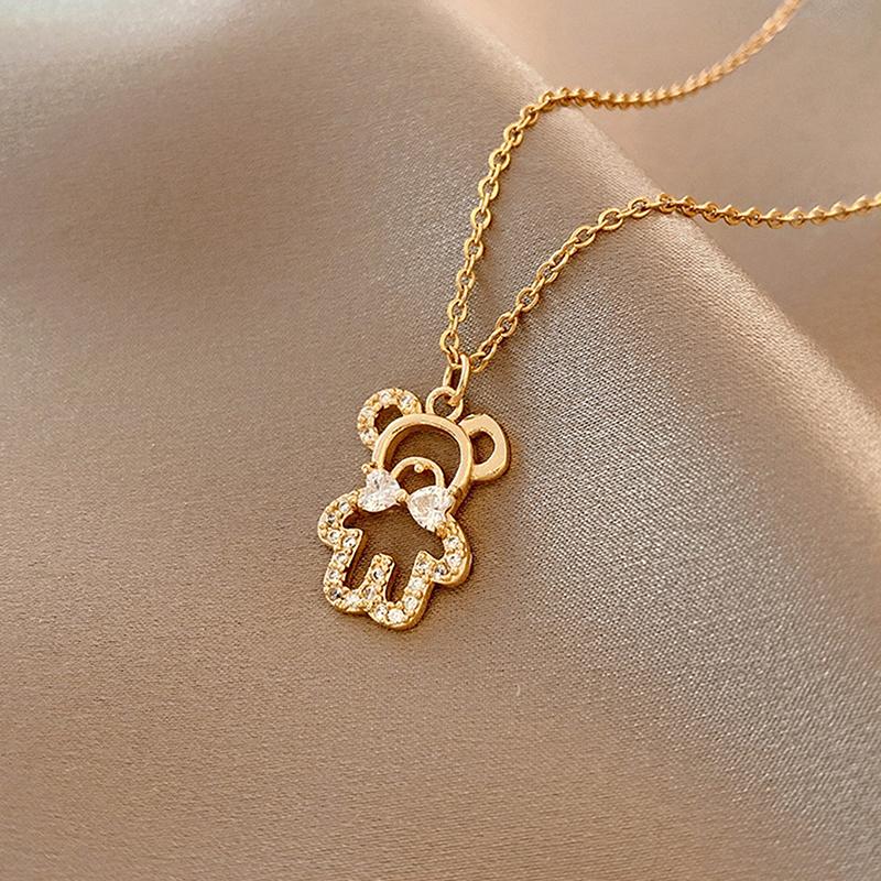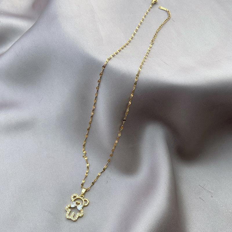 EMBRACE YOUR INNER CHILD WITH THIS ADORABLE STAINLESS STEEL DOUBLE-LAYER BEAR NECKLACE SET. THIS CHARMING SET FEATURES A CUTE BEAR PENDANT NECKLACE AND MATCHING EARRINGS, PERFECT FOR ADDING A TOUCH OF WHIMSY TO ANY OUTFIT. THE HYPOALLERGENIC STAINLESS STEEL MATERIAL ENSURES COMFORT AND DURABILITY, MAKING IT IDEAL FOR EVERYDAY WEAR.